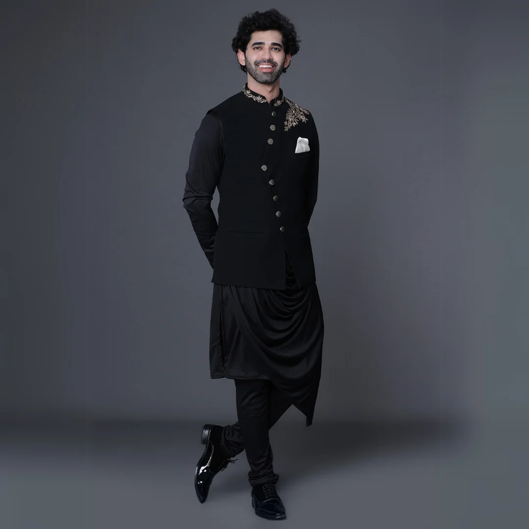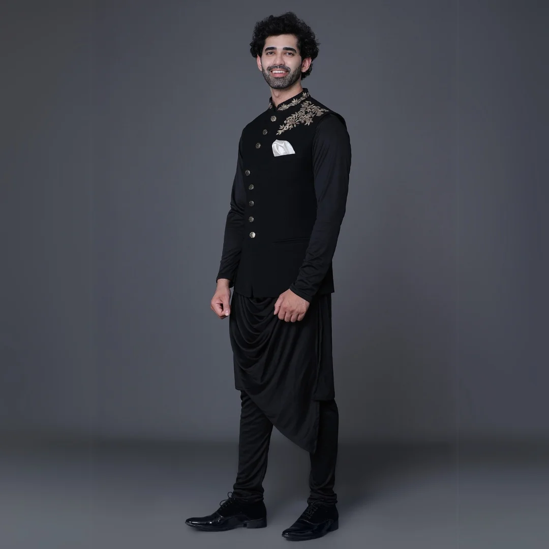 Components: 3(Drape Kurta , Pajami, Koti) Pattern of Koti: Hand Embroidery Detailing Dispatch Timeline: 5 to 6 Weeks Wash Care: Dry Clean Only.