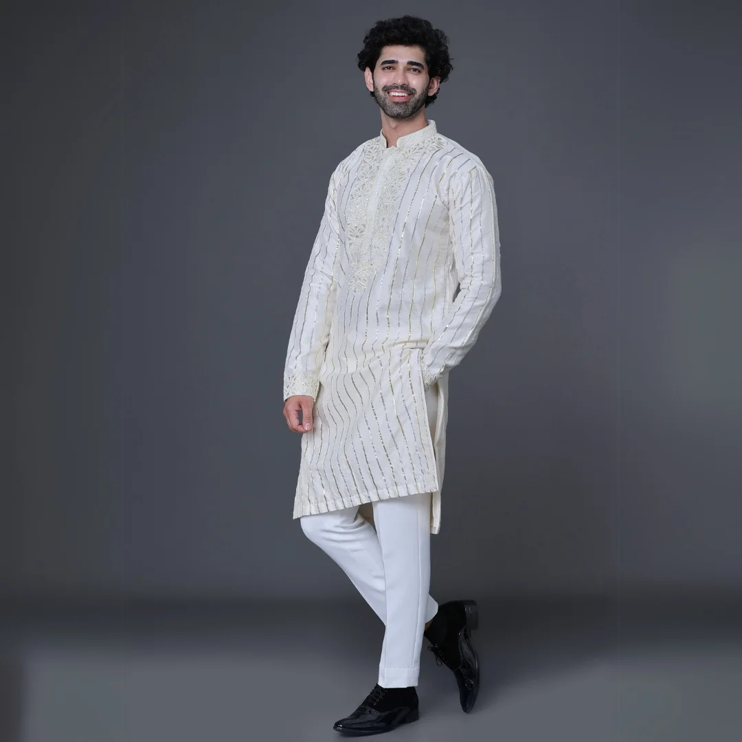 White gotta detailing kurta pajama