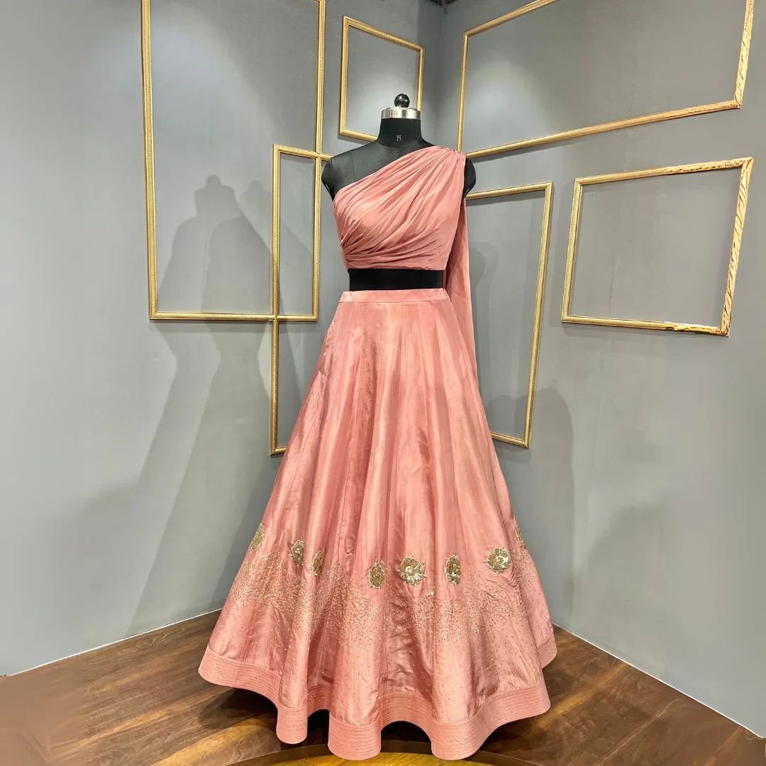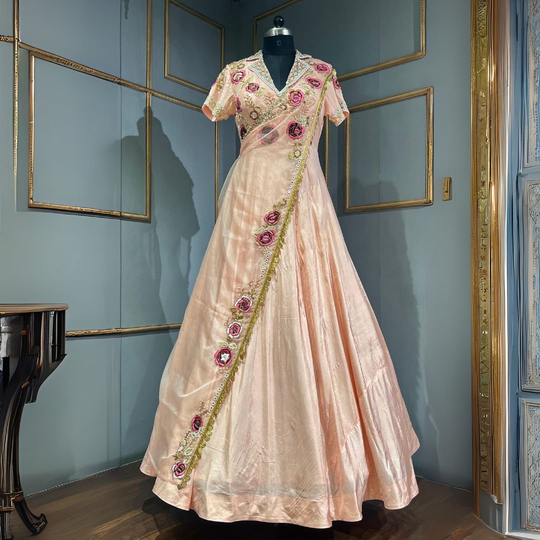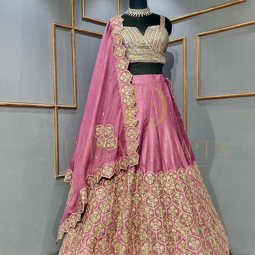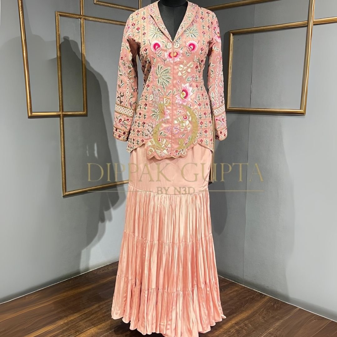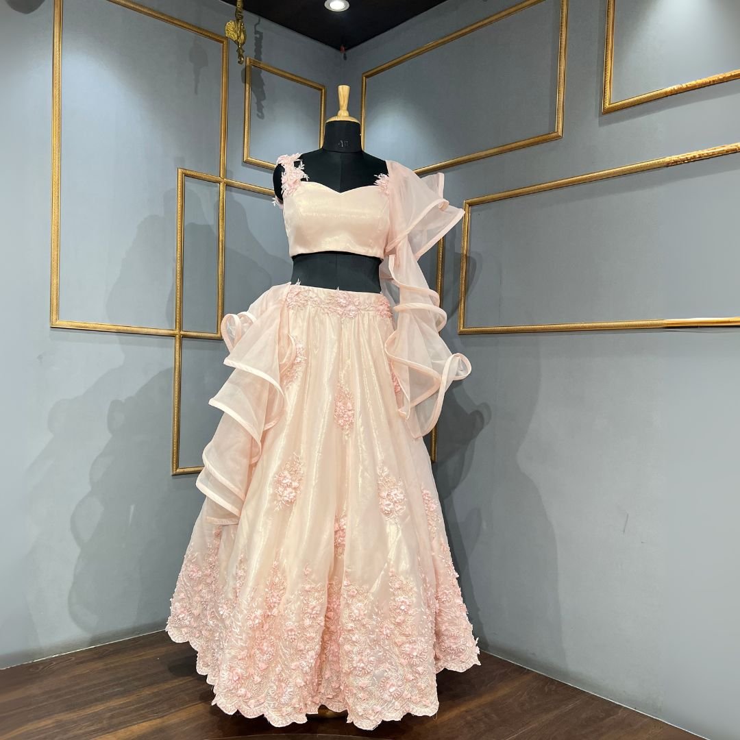 Peach thread Embroidery lehenga