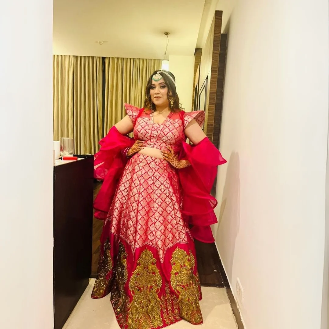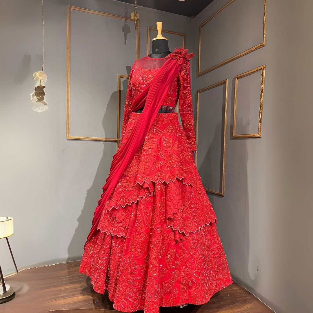 Red drape lehenga