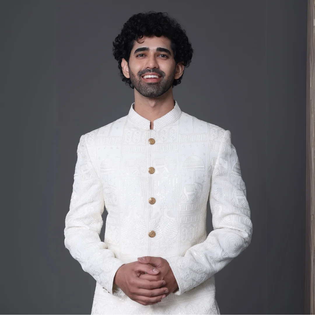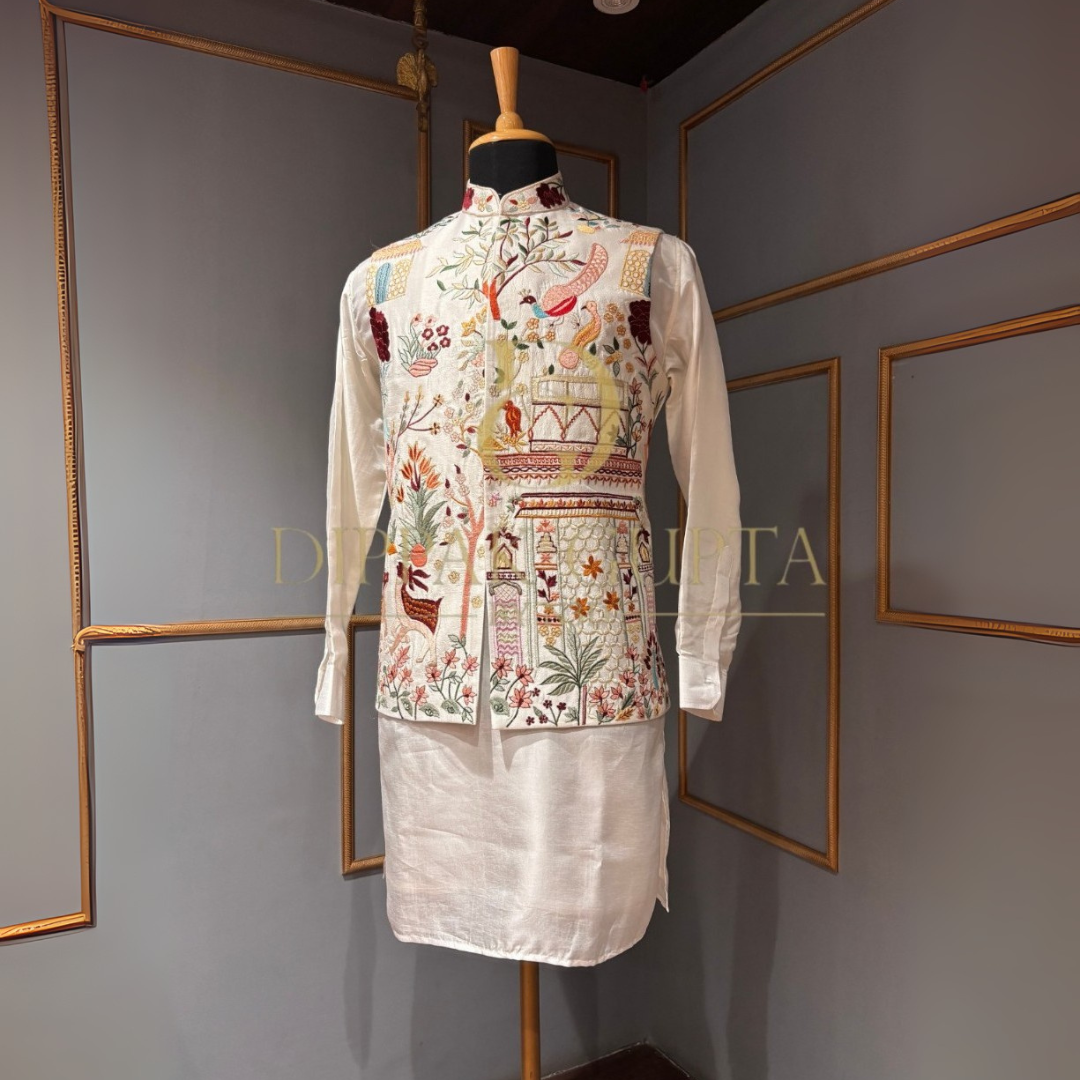 Royal Ivory Thread Embroidered Indo Western