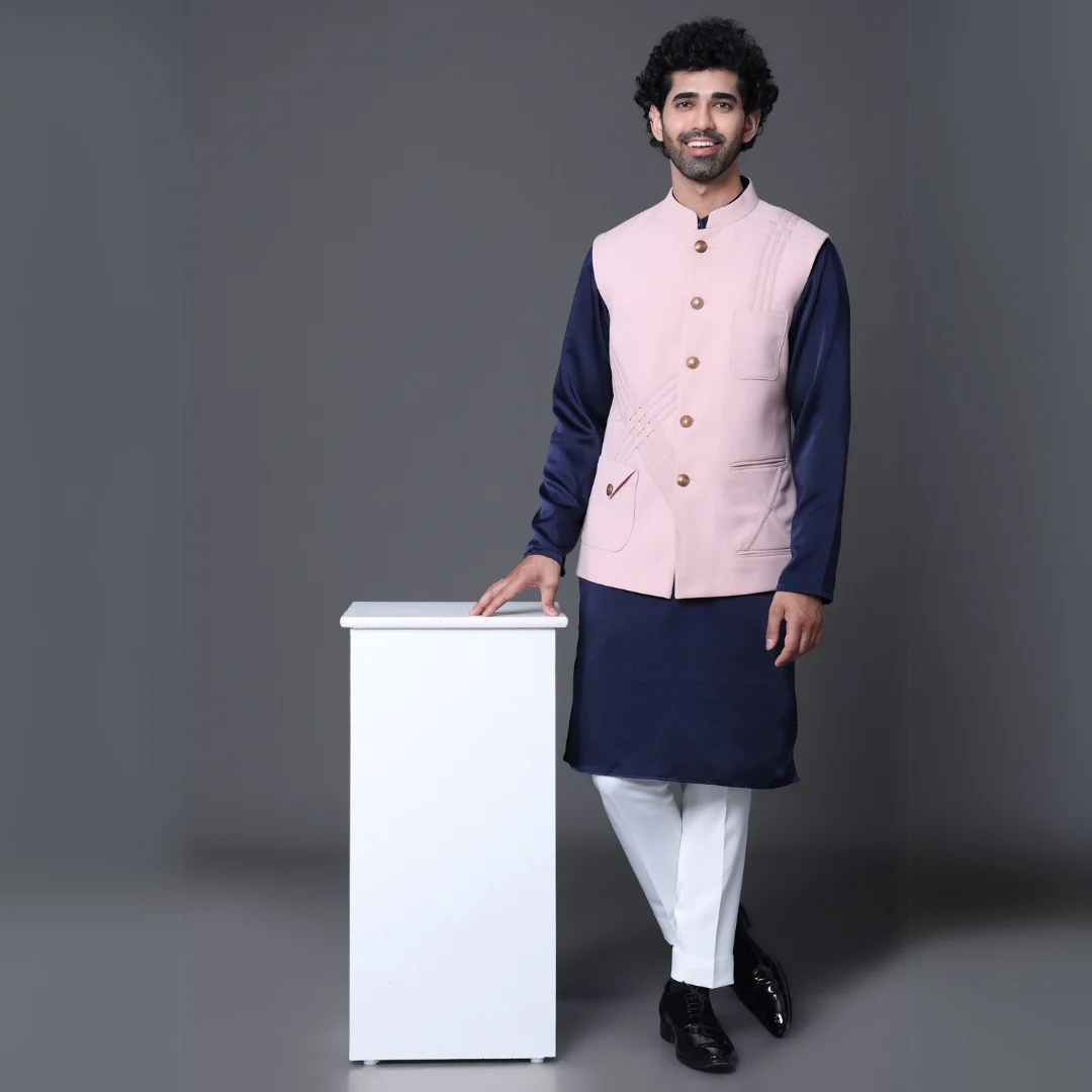 Blue Kurta with Pink Jacket