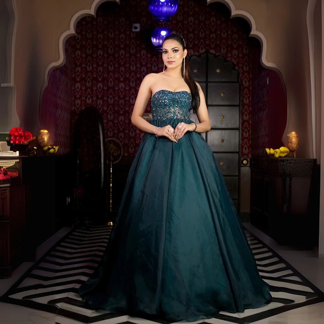 Bottle green corset Ball gown