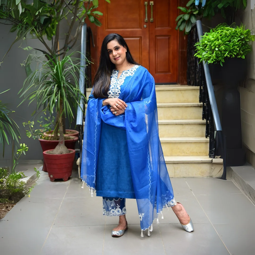 Blue thread Embroidery suit