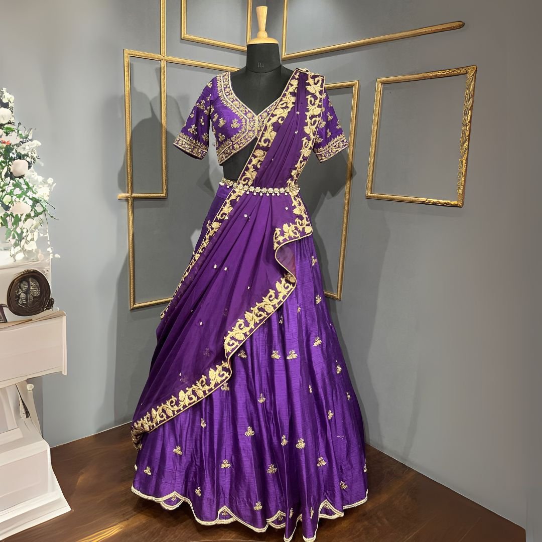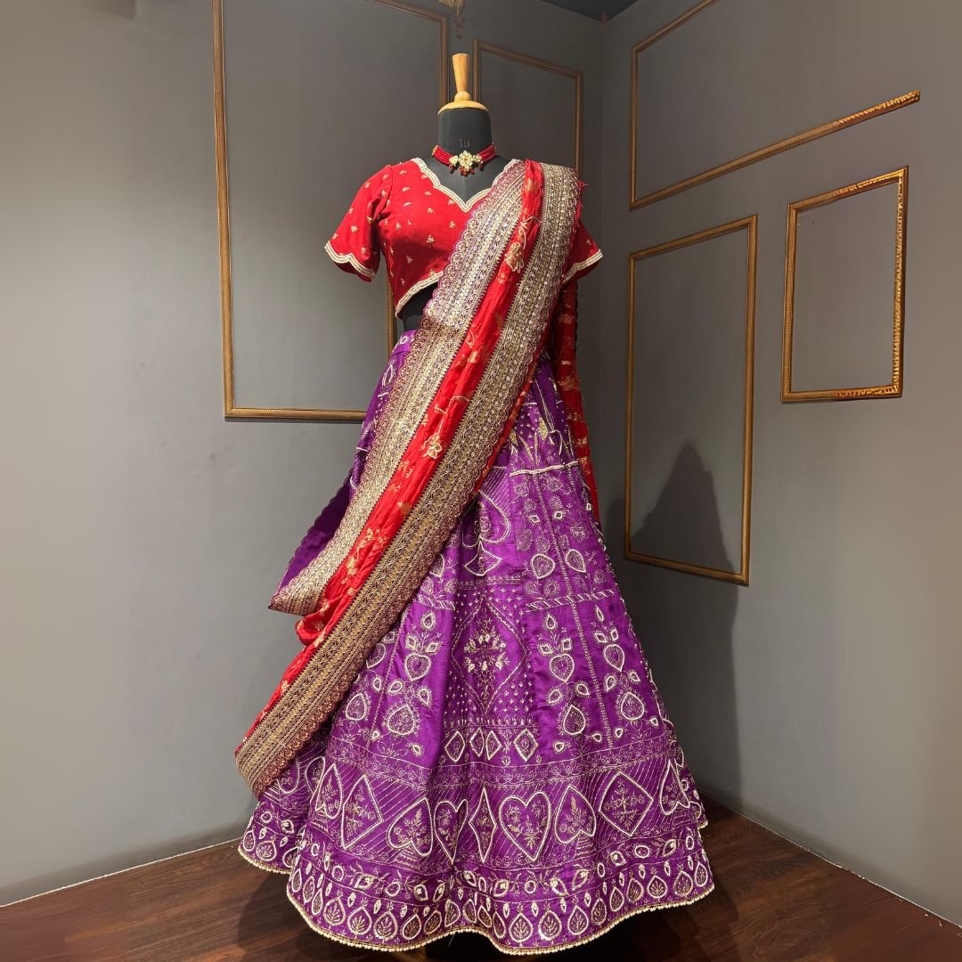 Dabka Emb purple lehenga