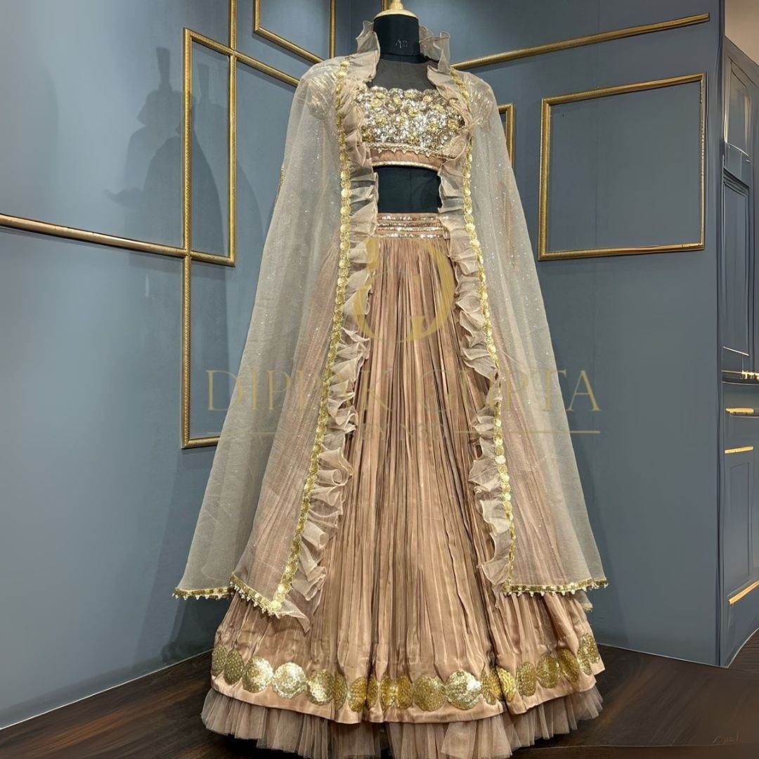 Champagne colour pearl work lehenga